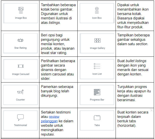 Supaya memudahkan Anda, di bagian ini kami akan perkenalkan elemen-elemen di Elementor. Dengan begitu, Anda bisa merasa lebih familiar dalam menggunakan plugin satu ini.