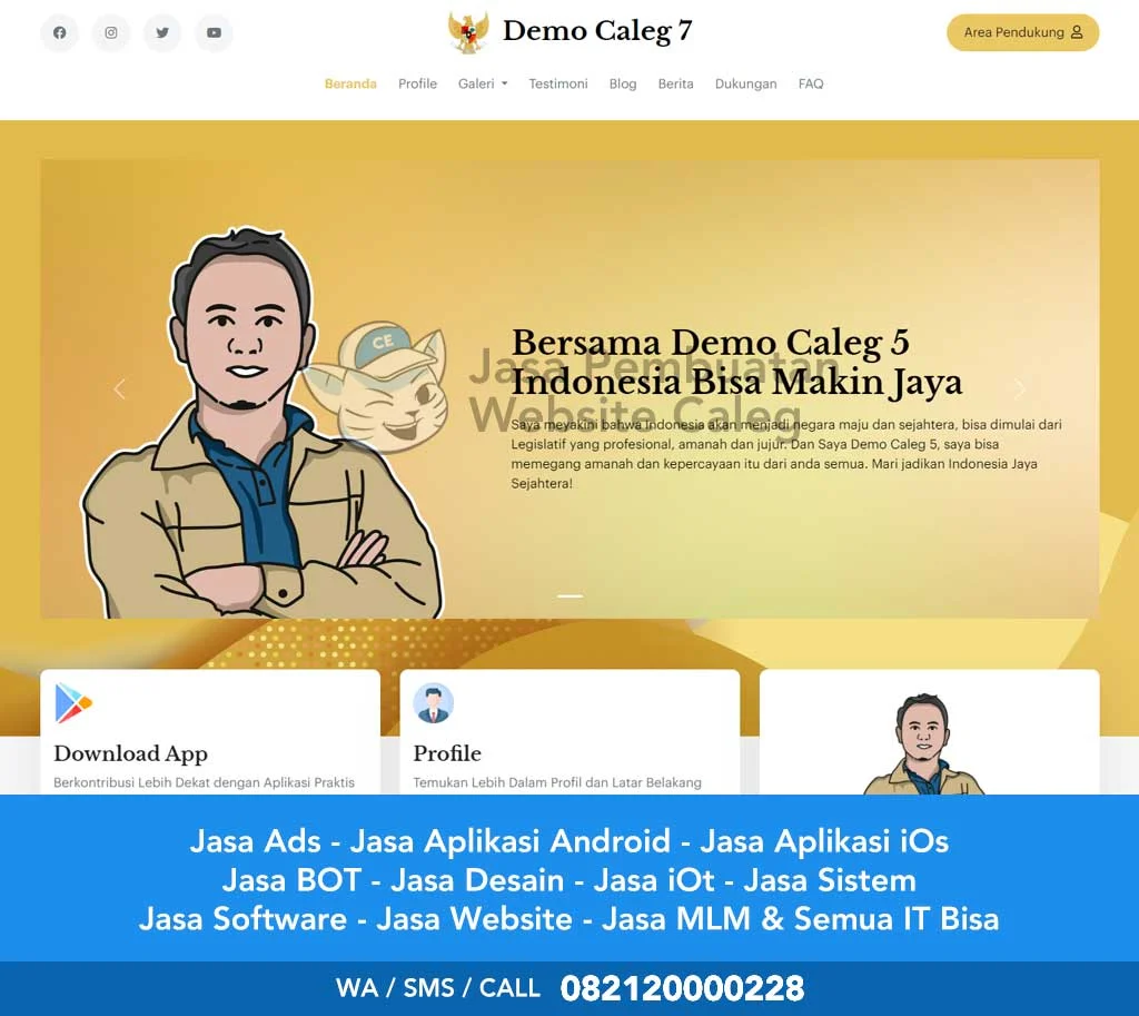 Ayo, mulai buat website Caleg untuk bisnis Anda semakin berkembang dan banyak di kenal seluruh Indonesia di Internet dan Google dan mulailah mengenalkan produk, layanan, jasa dan semua bidang usaha bisnis kamu melalui jasa pembuatan web Caleg terbaik dengan garansi maintenance selamanya termurah se-Indonesia!