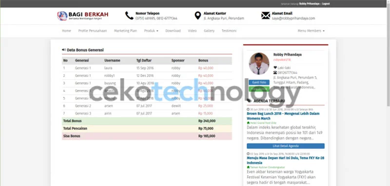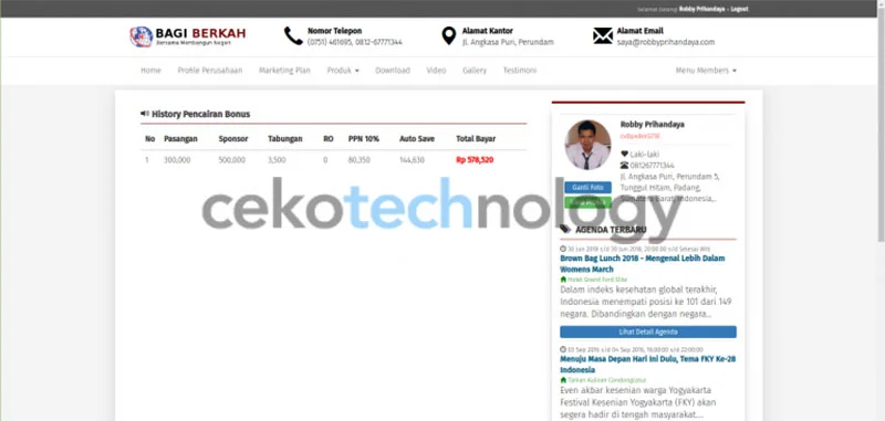 Konsultasikan MLM yang akan Anda kembangkan agar mendapat rekomendasi dan penawaran harga terbaik dari Cekotechnology, Jasa Website MLM Murah Terbaik dan Profesional saat ini didukung TIM Programmer Profesional.