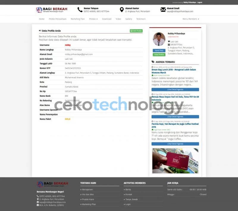 Selain itu anda juga bisa mengedit data atau profil yang anda miliki. Ini juga menjadi kelebihan tersendiri sebab anda akan memiliki 2 website replika dengan fungsi berbeda tanpa harus bersusah payah membuatnya. Satu website fokus pada pengembangan jaringan dan website lain lebih fokus pada penjualan produk.